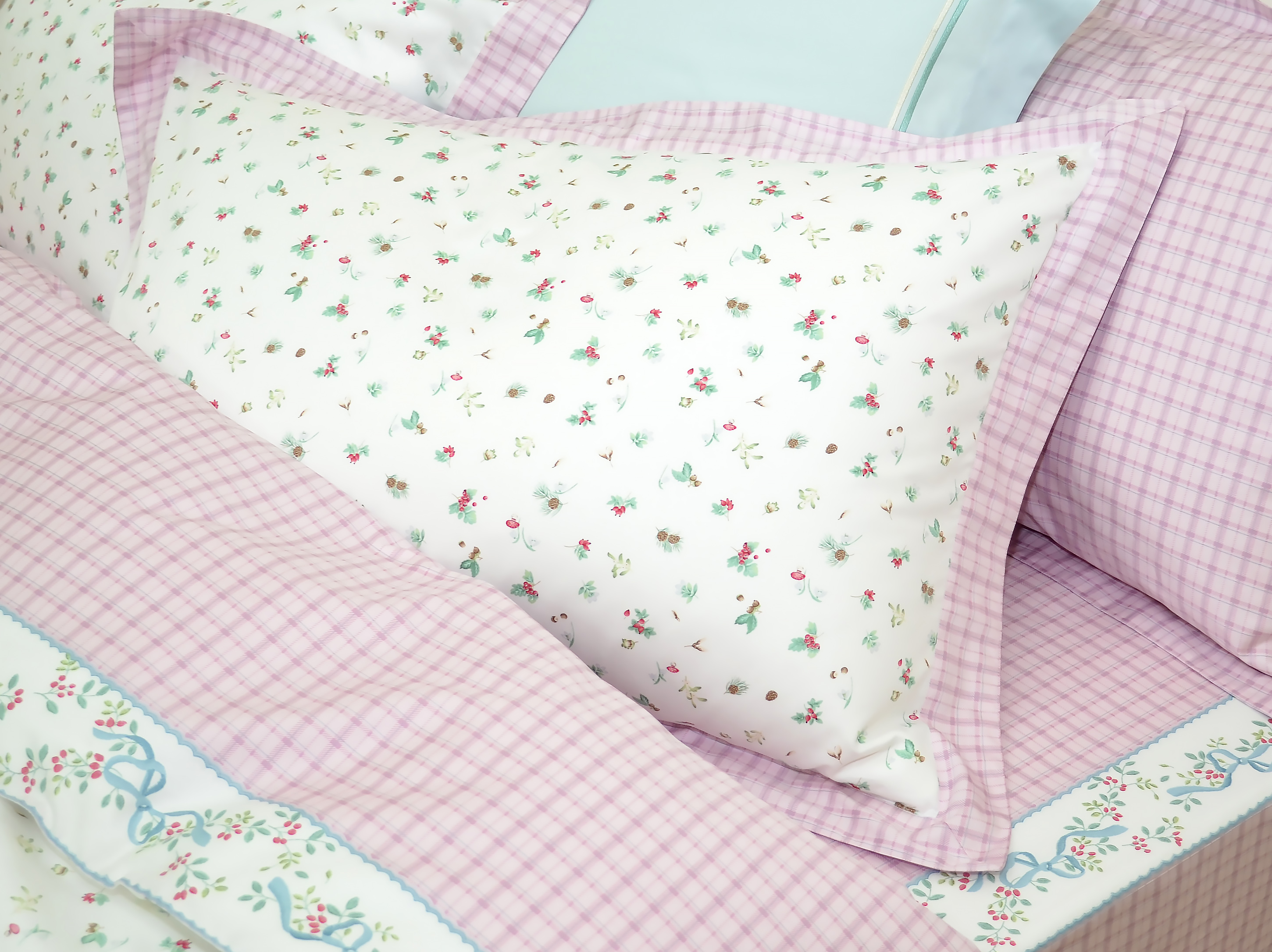 P8722粉-綠草如茵(加大床包)