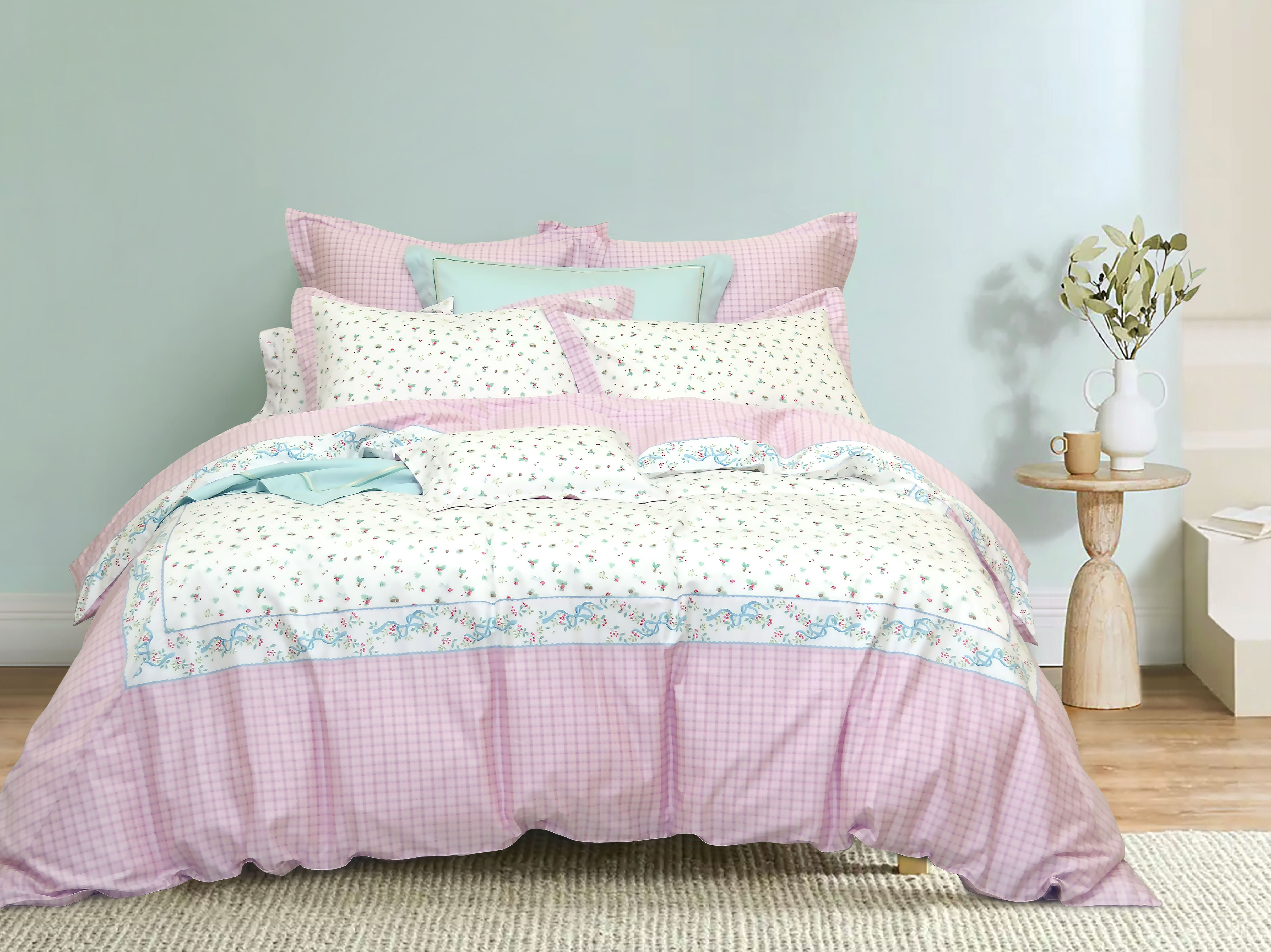 P8736粉-復刻童年(雙人床包)