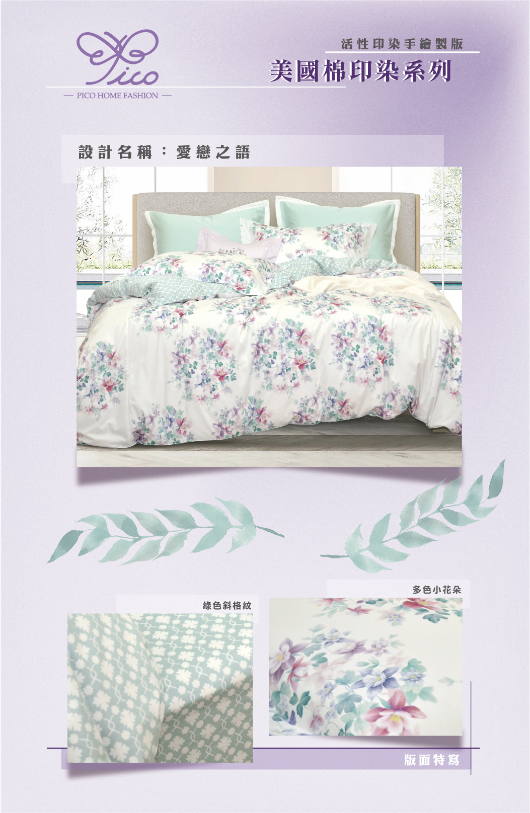 100%美國精梳棉-布品柔順、細緻-新式活性印染技術-頂級專櫃車工-全程台灣精製