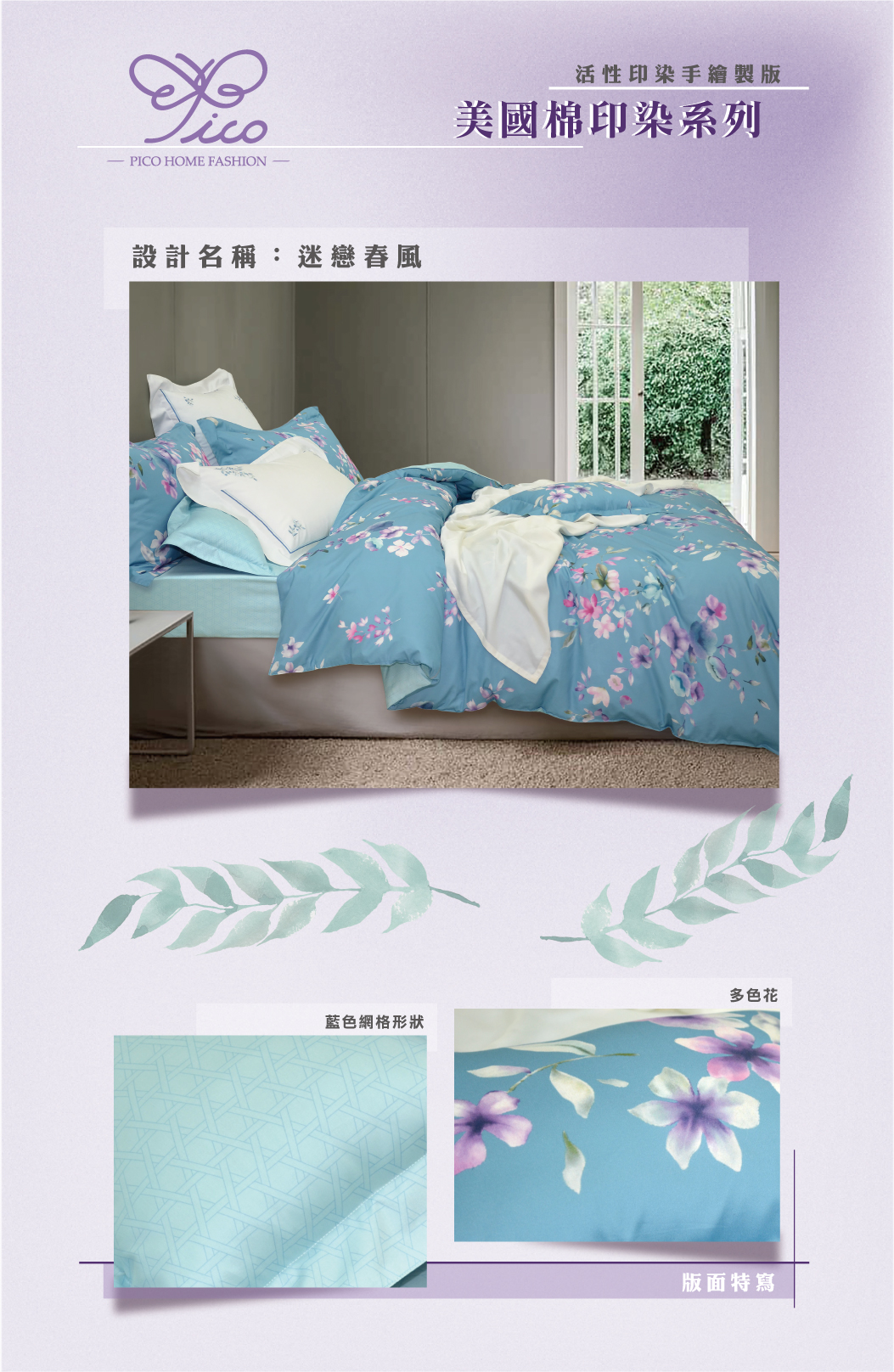 100%美國長纖細棉-布品柔順、細緻-新式活性印染技術-頂級專櫃車工-全程台灣精製
