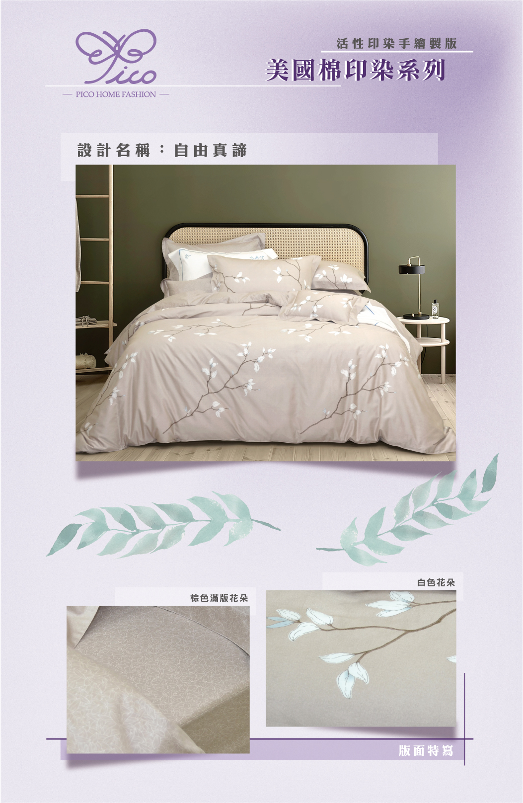 100%美國長纖細棉-布品柔順、細緻-新式活性印染技術-頂級專櫃車工-全程台灣精製